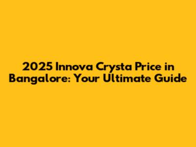 2025 Innova Crysta Price In Bangalore: Your Ultimate Guide