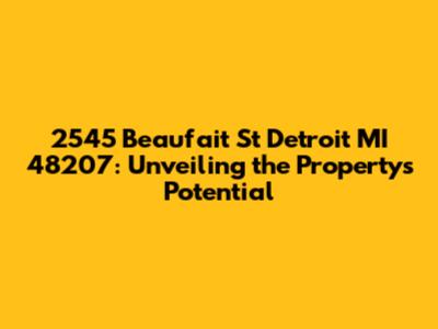 Hey there, real estate enthusiasts and curious minds! Let's dive deep into the details of 2545 Beaufait St, Detroit, MI 48207, a property that sparks interest and curiosity. We're going to explore what makes this address significant. Whether you're a potential buyer, a neighbor, or just someone fascinated by Detroit's urban landscape, this deep dive will provide valuable insights. We'll be looking at the property's history, current state, and its potential future. This isn't just about the bricks and mortar; it's about understanding the context of this location within the vibrant tapestry of Detroit's real estate market. The goal is to provide a comprehensive overview, equipping you with the knowledge to appreciate this address better. This location could be the site of a dream home, an investment opportunity, or a piece of Detroit's ongoing revitalization. Let's get started and discover what makes 2545 Beaufait St a noteworthy address! This exploration will also include understanding the broader context of Detroit's real estate market, including property values, neighborhood trends, and future development projects. We will also touch upon the historical significance of the area, shedding light on the events and people that have shaped this part of the city. So, buckle up, because we're about to embark on an insightful journey. We'll be looking into zoning regulations, local amenities, and the overall appeal of the neighborhood. This will give you a comprehensive understanding of what 2545 Beaufait St has to offer, and what its future might hold. We'll discuss potential investment opportunities, renovation possibilities, and the overall value of the property within the current market. Ready to uncover all the secrets of this address? Let's go!