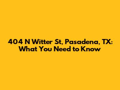 Hey guys! Ever found yourself curious about a specific address, maybe wondering what's going on there or if it's a good spot? Well, today we're diving deep into 404 N Witter St, Pasadena, TX 77506. We'll break down everything you might want to know about this particular location, from its surroundings to what makes Pasadena, TX, a place people call home. Whether you're a local looking for some info, considering a move, or just plain curious, stick around – we've got the deets!