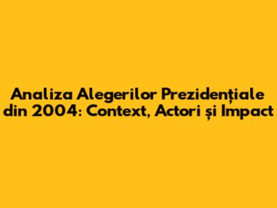 Analiza Alegerilor Prezidențiale Din 2004: Context, Actori Și Impact