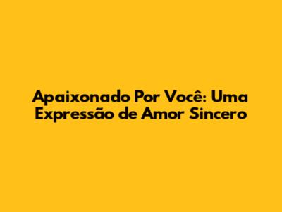 Apaixonado Por Você: Uma Expressão De Amor Sincero