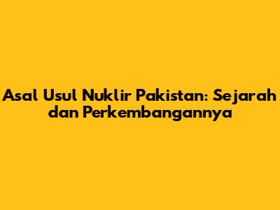 Asal Usul Nuklir Pakistan: Sejarah Dan Perkembangannya