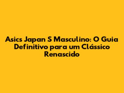 Ah, os Asics Japan S Masculino! Se vocĂȘ estĂĄ por dentro do mundo sneakerhead, com certeza jĂĄ ouviu falar desse modelo icĂŽnico. Mas, se por acaso vocĂȘ Ă© novo nesse universo, relaxa, porque este guia completo vai te deixar por dentro de tudo o que vocĂȘ precisa saber sobre o Asics Japan S Masculino, desde suas origens atĂ© as Ășltimas novidades. Vamos desvendar juntos o que faz desse tĂȘnis um verdadeiro sucesso, explorando suas caracterĂ­sticas, vantagens e, claro, como escolher o par perfeito para vocĂȘ.