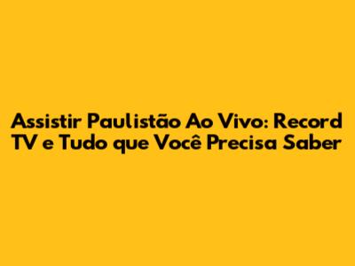 Assistir Paulistão Ao Vivo: Record TV E Tudo Que Você Precisa Saber