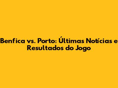 Benfica Vs. Porto: Últimas Notícias E Resultados Do Jogo