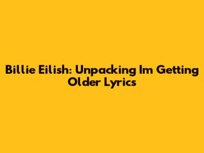 Hey music lovers! Let's dive deep into the emotional ocean that is Billie Eilish's track, "I'm Getting Older." This isn't just a song; it's a raw, unfiltered peek into the artist's mind, a reflection on growth, change, and the unsettling beauty of getting older. The lyrics are packed with symbolism and personal experiences, making it a goldmine for analysis. So, grab your headphones, get comfy, and let's decode this masterpiece together. We'll explore the song's themes, dissect the lyrics line by line, and discuss the overall impact of "I'm Getting Older." Prepare to be moved, guys!