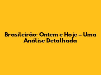 Brasileirão: Ontem E Hoje – Uma Análise Detalhada