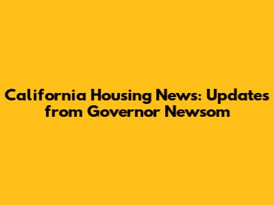 California Housing News: Updates From Governor Newsom