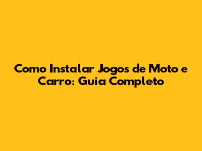 Como Instalar Jogos De Moto E Carro: Guia Completo