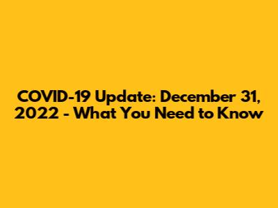COVID-19 Update: December 31, 2022 - What You Need To Know
