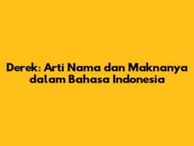 Derek: Arti Nama Dan Maknanya Dalam Bahasa Indonesia