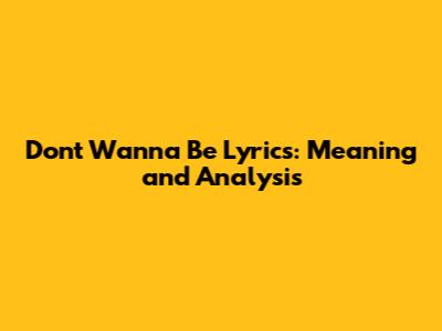 Don't Wanna Be Lyrics: Meaning And Analysis
