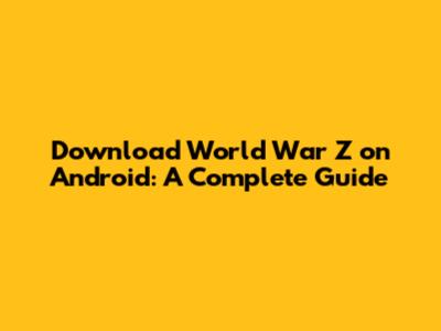 Download World War Z On Android: A Complete Guide