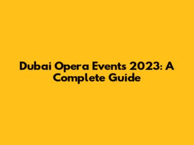 Dubai Opera Events 2023: A Complete Guide
