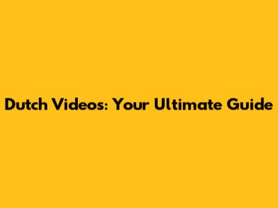 Dutch Videos: Your Ultimate Guide