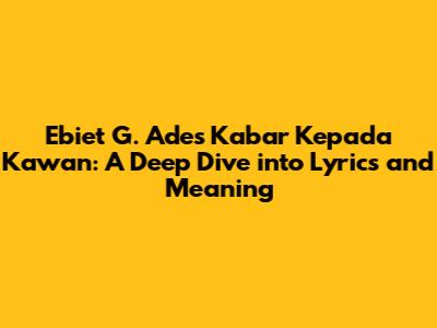 Hey guys! Ever felt a song just hit you right in the feels? That's what Ebiet G. Ade's music does for a lot of us, especially with a track like "Kabar Kepada Kawan" (News to Friends). This song isn't just a collection of words and melodies; it's a journey, a reflection, and a message all rolled into one. Let's dive deep into the lyrics of Ebiet G. Ade's “Kabar Kepada Kawan”, explore what makes it so special, and see why it continues to resonate with so many people, even today. We'll be breaking down the song, line by line, to truly understand its depth and the emotions it evokes. Ready?