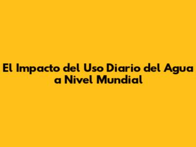 El Impacto Del Uso Diario Del Agua A Nivel Mundial