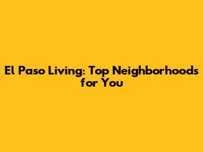 El Paso Living: Top Neighborhoods For You