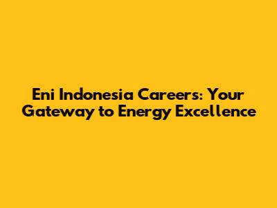 Eni Indonesia Careers: Your Gateway To Energy Excellence