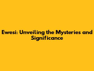 Ewesi: Unveiling The Mysteries And Significance