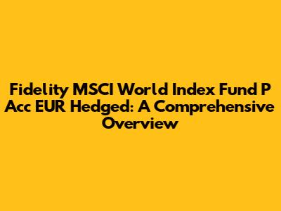 Hey guys! Let's dive into the Fidelity MSCI World Index Fund P Acc EUR Hedged. This fund is designed to provide investors with exposure to global equities while hedging against currency fluctuations between the Euro and other currencies. If you're looking to diversify your portfolio with international stocks but are worried about the impact of currency movements, this fund might be an interesting option. Let's break down what makes this fund tick, its benefits, and some considerations before you jump in.
