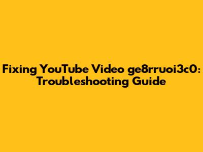 Fixing YouTube Video Ge8rruoi3c0: Troubleshooting Guide