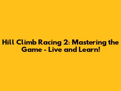 Hill Climb Racing 2: Mastering The Game - Live And Learn!