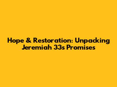 Hope & Restoration: Unpacking Jeremiah 33's Promises