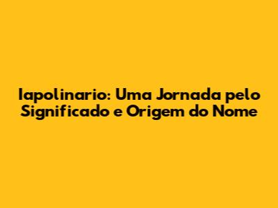 Iapolinario: Desvendando O Significado E A Origem Do Nome