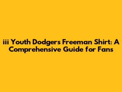 Iii Youth Dodgers Freeman Shirt: Ultimate Guide