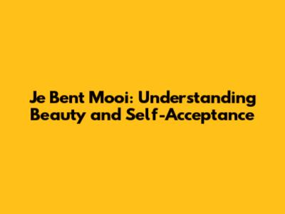 Je Bent Mooi: Understanding Beauty And Self-Acceptance