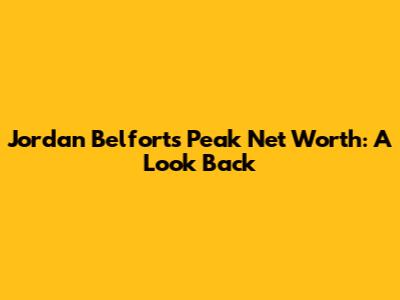 Jordan Belfort's Peak Net Worth: A Look Back