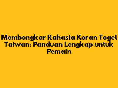 Membongkar Rahasia Koran Togel Taiwan: Panduan Lengkap untuk Pemain