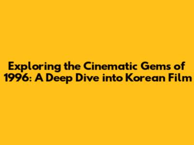 Hey guys! Let’s take a trip back to 1996, a year brimming with fantastic Korean cinema. We're going to explore some of the most memorable and impactful films that hit the screens that year. Whether you're a die-hard cinephile or just looking for some classic movies to add to your watchlist, you’re in for a treat. Korean cinema in the 90s was a fascinating mix of genres and styles, laying the groundwork for the global phenomenon it is today. So, grab your popcorn, settle in, and let’s dive into the cinematic landscape of 1996!
