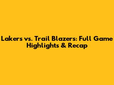 Lakers Vs. Trail Blazers: Full Game Highlights & Recap
