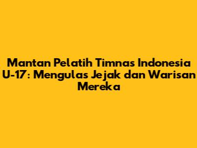 Mantan Pelatih Timnas Indonesia U-17: Jejak Dan Warisan