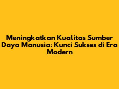 Meningkatkan Kualitas SDM: Strategi Jitu
