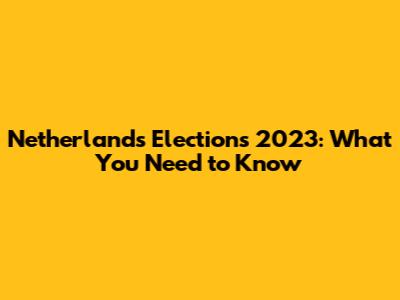 Netherlands Elections 2023: What You Need To Know