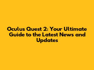 Oculus Quest 2: Latest News & Updates