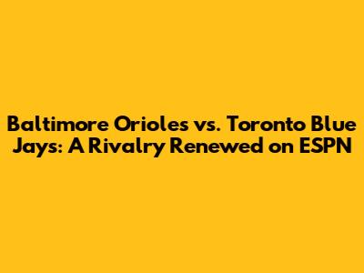 Baltimore Orioles vs. Toronto Blue Jays: A Rivalry Renewed on ESPN