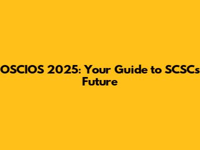 OSCIOS 2025: Your Guide To SCSC's Future