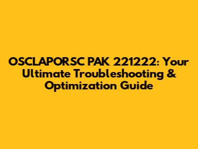 OSCLAPORSC PAK 221222: Troubleshooting & Optimization Guide