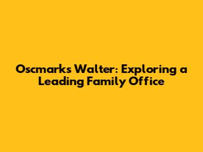 Oscmarks Walter: Exploring A Leading Family Office