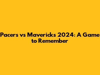 Pacers Vs Mavericks 2024: A Game To Remember