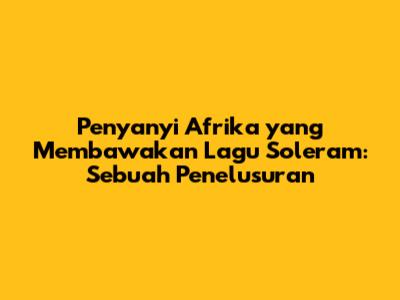 Penelusuran penyanyi Afrika yang membawakan lagu Soleram memerlukan penelitian yang cermat dan komprehensif. Perlu dicari informasi mengenai artis-artis Afrika yang pernah membawakan lagu ini, baik dalam bentuk rekaman studio, penampilan langsung, maupun versi cover. Sayangnya, informasi mengenai hal ini masih sangat terbatas. Hingga saat ini, belum ada nama penyanyi Afrika terkenal yang secara resmi merilis versi Soleram. Namun, bukan berarti tidak ada sama sekali. Ada kemungkinan bahwa ada musisi Afrika yang pernah menyanyikan Soleram dalam acara-acara pribadi atau kolaborasi informal. Informasi mengenai hal ini mungkin sulit ditemukan karena tidak tercatat secara publik. Upaya pencarian dapat dilakukan melalui berbagai sumber, seperti: platform musik digital, media sosial, forum musik, komunitas diaspora Indonesia di Afrika, dan arsip-arsip musik. Jika ada informasi lebih lanjut mengenai hal ini, akan kami update terus.