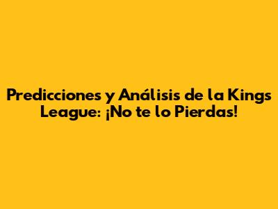 Predicciones Y Análisis De La Kings League: ¡No Te Lo Pierdas!