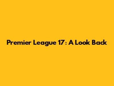 Premier League 17: A Look Back