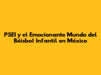 PSEI Y El Emocionante Mundo Del Béisbol Infantil En México