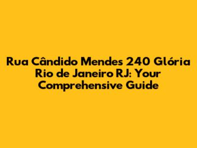 Hey guys! Ever find yourself needing the lowdown on a specific spot in a bustling city? Today, we're diving deep into Rua Cândido Mendes, 240, located in the vibrant Glória neighborhood of Rio de Janeiro. Whether you're planning a visit, need to send a package, or are just plain curious, this guide is your one-stop shop. We'll cover everything from the street's ambiance and what makes it special to nearby landmarks, transportation options, and the overall vibe of the area. Get ready to explore! Understanding the location is crucial for anyone planning a visit or needing to navigate the area. Glória is a historic neighborhood in Rio de Janeiro, known for its cultural attractions and proximity to other famous areas. Rua Cândido Mendes itself has its own unique character, blending residential and commercial elements. Knowing the specific details, such as nearby landmarks and transportation options, can significantly enhance your experience. This guide aims to provide a comprehensive overview, ensuring you have all the information you need. So, whether you're a tourist, a local, or just curious, stick around as we uncover everything about Rua Cândido Mendes, 240.
