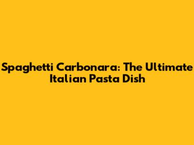 Spaghetti Carbonara: The Ultimate Italian Pasta Dish